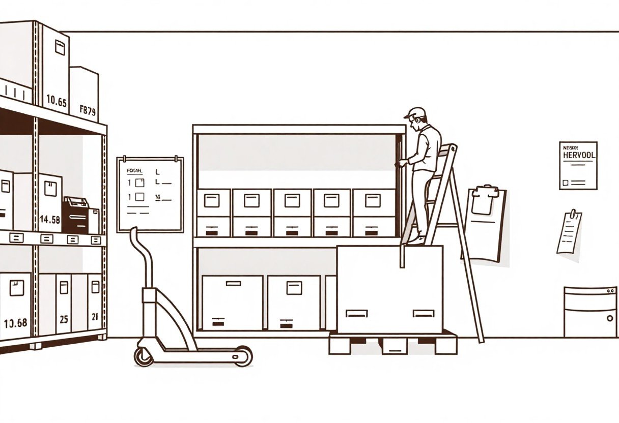 يُنظّم الفريق المستودع الخلفي بحسب فئات السلع مع لوحات إرشاد واضحة لتقليل وقت البحث، وهم يتبعون نظام FIFO للمنتجات الحساسة لضمان دوران سريع.
